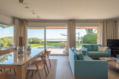 La maison vous propose un agréable salon-séjour ouvert sur la mer et doté d'une cheminée, une cuisine séparée contemporaine et 5 belles chambres avec salle d'eau ou salle de bains et dressing privatifs.
