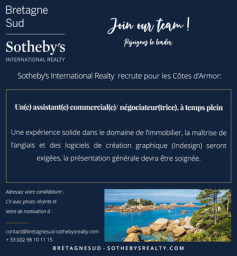 SOTHEBY'S INTERNATIONAL REALTY is looking for a full-time Sales Assistant/negotiator in the Côtes d'Armor area.