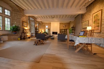 This prestigious property consists of a 16th century ISMH mansion, an old ruined 12th century abbey, and a barn. The manor offers on the ground floor a beautiful reception room, a kitchen, sanitary facilities, and a magnificent spiral staircase housed in the tower brings you to the floors where we find a large bright living room with insert, a kitchen, and 4 bedrooms and 3 bathrooms. The beautiful architecture of the building, with its hexagonal tower flanked by a watchtower, its beautiful chimneys, its windows with cushions, its visible beams and the quality of the restoration which confers the modern comfort while respecting the authenticity of the building, make it a unique property. The park of 5 acres bordered by a river forms a screen of greenery that protects this beautiful home. The city center with shops, schools, colleges, high schools and a TGV station are within walking distance. The layout and arrangement of the rooms on the ground floor allow a commercial activity (receptions, seminars, artistic or cooking lessons, restaurant or liberal profession to mention some of the possibilities but if you have another project and are looking for an idyllic setting, you must come and visit this lovely property!). The coast is 25 km away. For more information about this prestigious property call Peter Bos at 00-33 6 7150 6389.