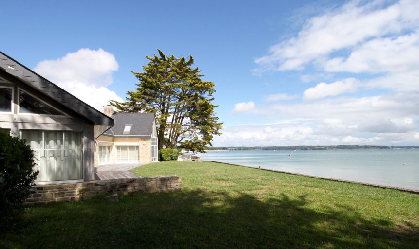 EXCLUSIVITY. Bretagne Sud Sotheby's International Realty. Panoramic sea view for this house in very good condition of approximately 240M2 of HS on more than 1000M2 of enclosed land. Large terrace; direct access to the beach. Outbuilding with summer kitchen to receive and / or increase the surface. Currently 3 bedrooms (poss. +). Garage, Cellar. Shops nearby.