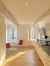 The entrance opens onto a 15 m² independent eat-in kitchen, followed by a spacious and light-filled 38 m² living room, facing the shared inner garden — a true green haven in the heart of the city.