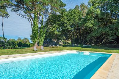 Several hundred-year-old oaks adorn the land of approx. 2 ha. partly wooded on the edge of a ru. The swimming pool, away from the house is covered by a dome;