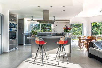 La pièce à vivre offre plusieurs sorties pour profiter d'une grande terrasse exposée Sud-Est/Sud-Ouest.