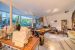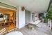 Un très grand salon séjour tout de baies vitrées, avec cheminée, et vue dégagée sur le jardin et sur les arbres donne sur une terrasse couverte d'environ 30 m2 pour dîner en famille ou pour vos réceptions amicales. Un large escalier métallique contemporain descend au jardin.