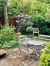 Le jardin très arboré et fleuri est doté d'un abri pour l'outillage et d'une terrasse ombragée.