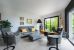 - On the ground floor, a large double living room with a fireplace and access to the terrace facing the sea, a single-storey suite with dressing room and bathroom equipped with a large walk-in shower and 2 sinks, 1 office, 1 fitted and equipped kitchen with an adjoining veranda