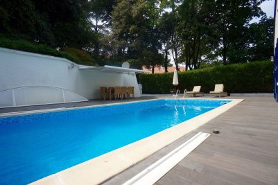 La Baule les Pins: House of 1980 completely renovated with swimming pool closed of face to face, on a ground of 1 000 m2. Beautiful exposed is, the South and the West. American kitchen giving onto the terrace the South / Southwest, for the ends of the evening brightened up at the edge of the Swimming pool (9x5). 4 in 5 rooms, among which one in the RcH, the big garage, the wine cellar, the big shower-room for the returns of beach which is in only 200 m. The avenue Lajarrige with all its businesses in 400 m. An ideal situation to take advantage completely of this magnificent sea resort.