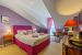 A l’étage, une suite ouvrant sur une terrasse dominant la mer avec son élégante salle de bains privative, trois belles chambres dont deux vue mer se partagent deux salles d’eau, un charmant boudoir.