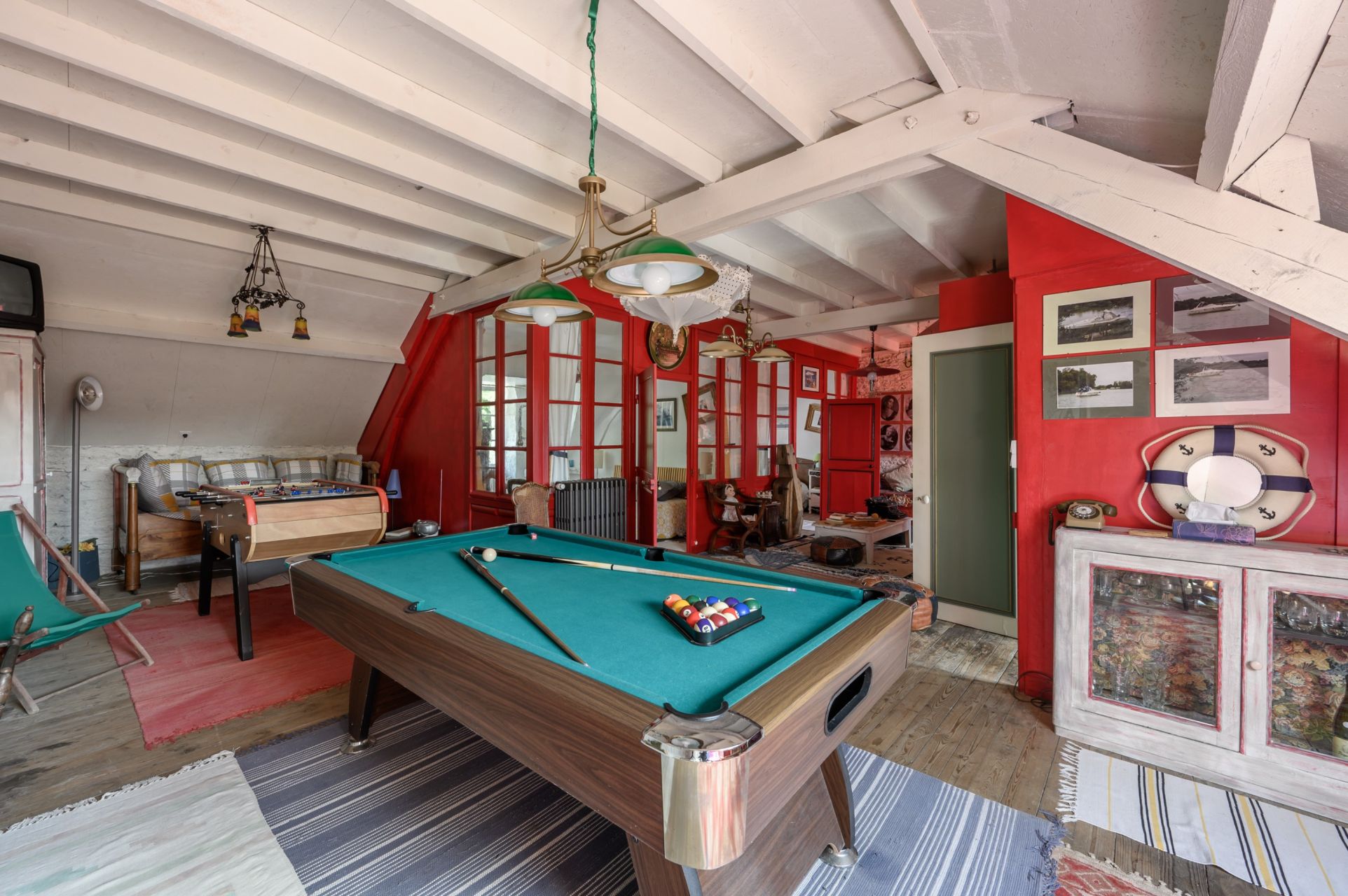 Au premier étage, un joli dégagement mène à une chambre avec salle d'eau, un dressing pouvant être aménagé en chambre, un bureau ou une chambre supplémentaire, et un salon de musique. Le deuxième étage abrite une superbe pièce de détente équipée d'un billard et d'un babyfoot, ainsi que deux chambres et une salle d'eau avec WC.