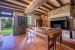 D’une surface habitable d’environ 222 m², l’ensemble se compose d’un corps de logis et d’une élégante tour. L’entrée s’ouvre sur une vaste pièce de vie de 61 m² chaleureuse, dotée d’une cheminée ancienne traditionnelle. La cuisine, aménagée dans la tour, séduit par son caractère unique et sa cheminée monumentale. La poutraison d’époque, soigneusement préservée, confère une âme remarquable aux lieux.