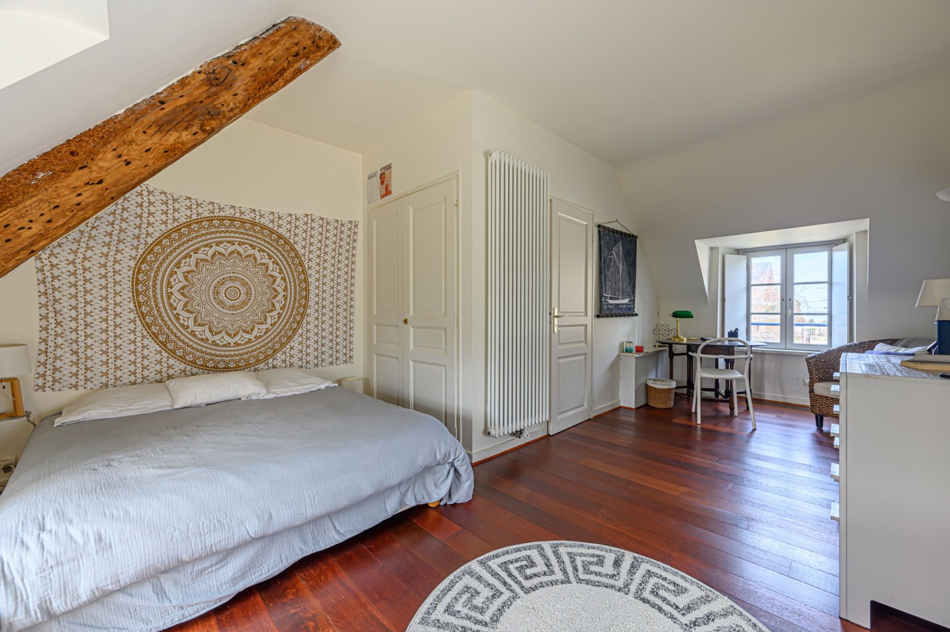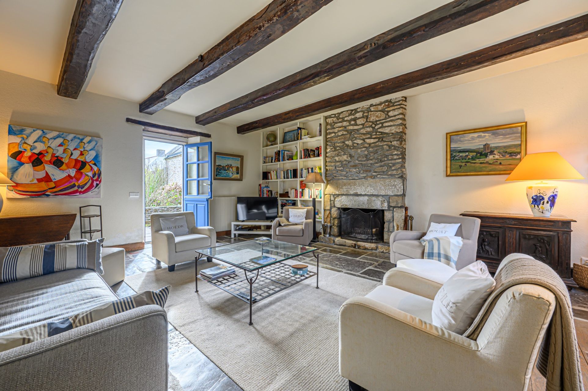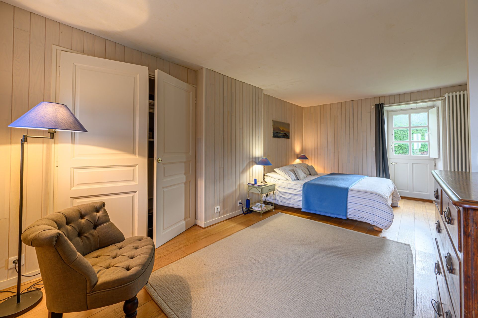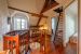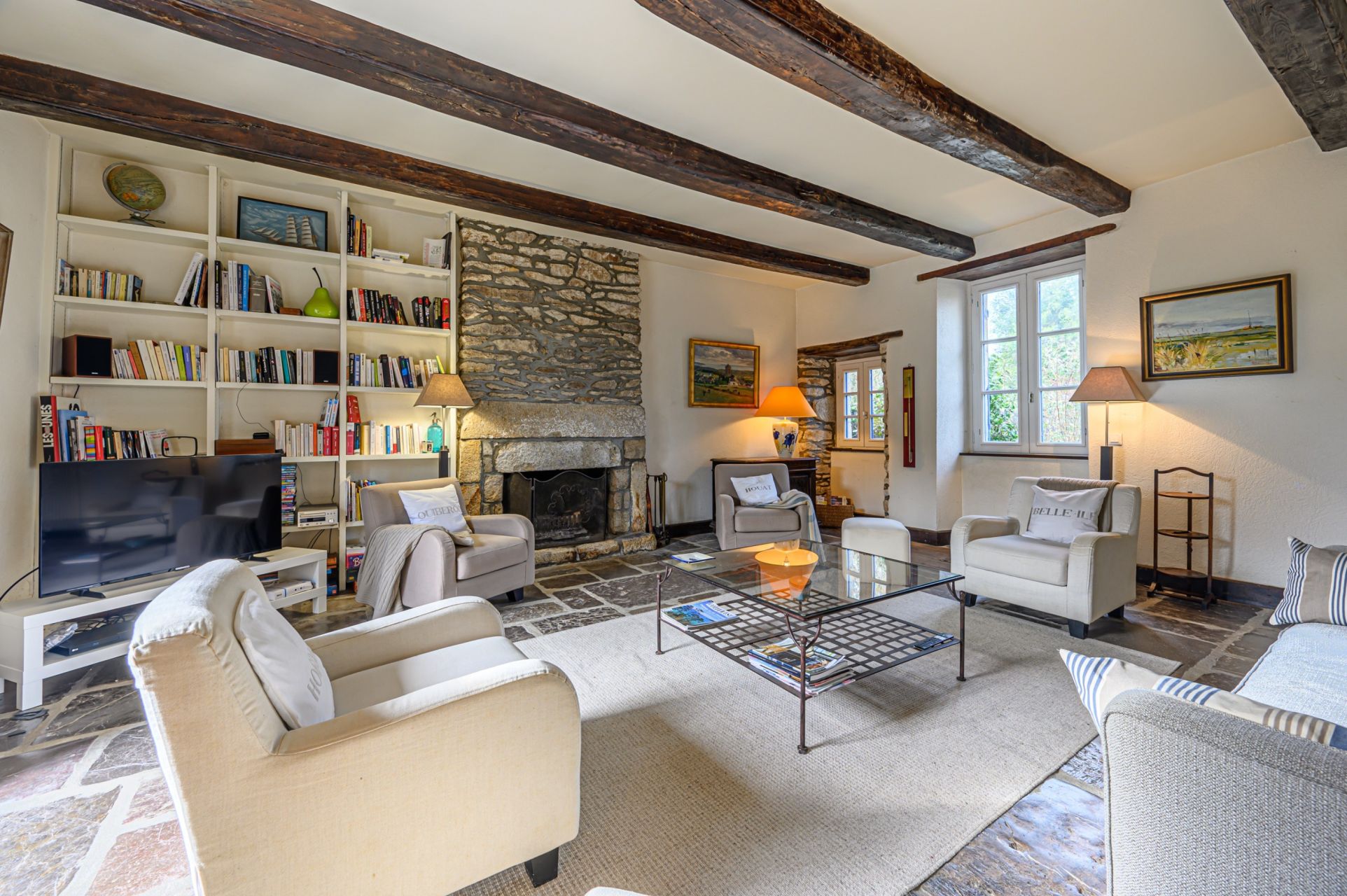 Cuisine américaine entièrement équipée ouverte sur une salle à manger lumineuse, un salon convivial pour toute la famille avec cheminée, 6 chambres spacieuses dont une chambre en rez de chaussée avec salle d'eau privative et un bureau attenant.