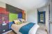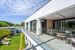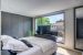 Cette villa de luxe aux vastes volumes offre en rez-de-chaussée une réception avec de larges baies ouvertes sur la terrasse aménagée et le jardin paysager, une cuisine totalement ouverte sur la réception et la piscine d’intérieur chauffée et sécurisée toute l’année